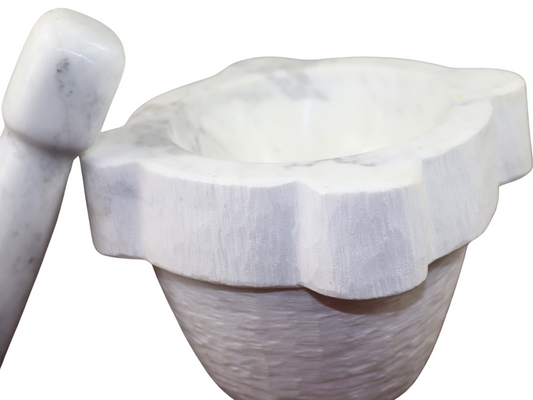 Mortaio da cucina in marmo bianco di Carrara con pestello