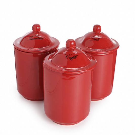 Barattoli in Ceramica per Sale, Zucchero e Caffè - Set 3 Pezzi Rossi o Bianchi perfetti per il Natale